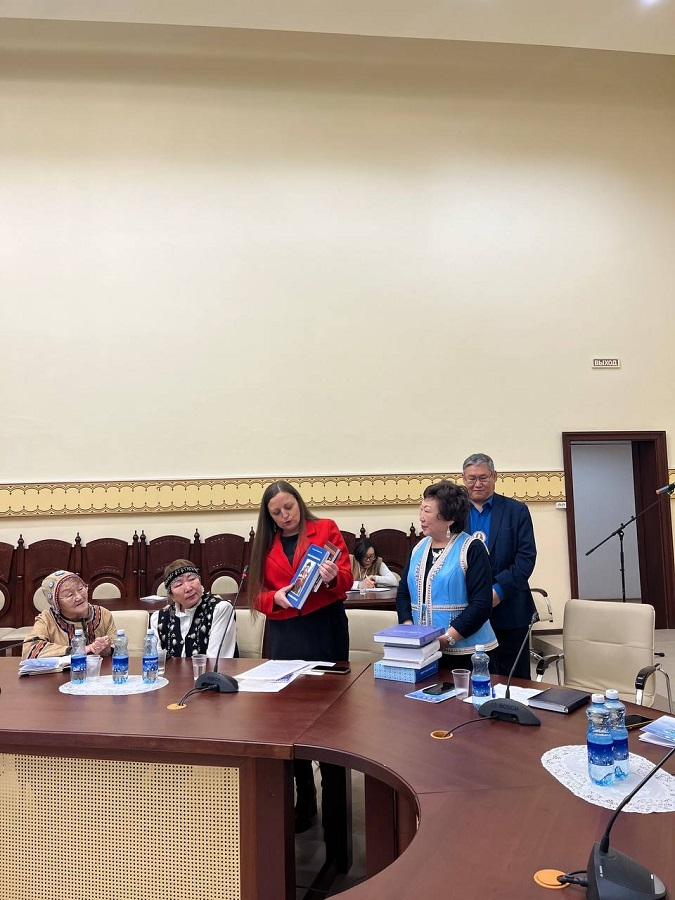 В рамках обсуждения дальнейшего сотрудничества ИФЛ СО РАН и ИГИПМНС СО РАН состоялась встреча с директором якутского института, действительным членом АН Республики Саха (Якутия), доктором исторических наук, доцентом Сарданой Ильиничной Бояковой, на которой обсуждались актуальные вопросы подготовки будущего тома «Эвенские героические сказания» серии «Памятники фольклора народов Сибири и Дальнего Востока».