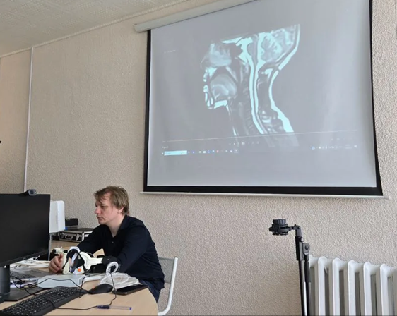 — Очень понравилось, как Тимофей Владимирович показывал и рассказывал про оборудование. Была даже возможность опробовать некоторые приборы на себе. Во второй части началась видеосъемка, но это не помешало продолжению экскурсии. Мы посмотрели на фотографии представителей коренных народов Сибири, рассмотрели стенд с книгами, — поделился впечатлениями студент Данил Писаренко.