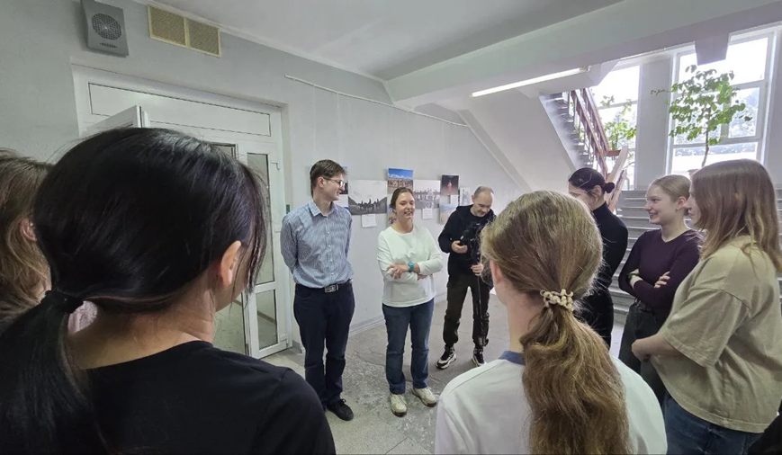 Встречая студентов, краткую экскурсию по мультимедийной фотовыставке «Сквозь время: голоса Сибири и Дальнего Востока», размещенной в фойе института, провел заместитель директора по научной работе канд. искусствоведения П. С. Шахов, который рассказал об основных исследовательских направлениях Института филологии СО РАН.