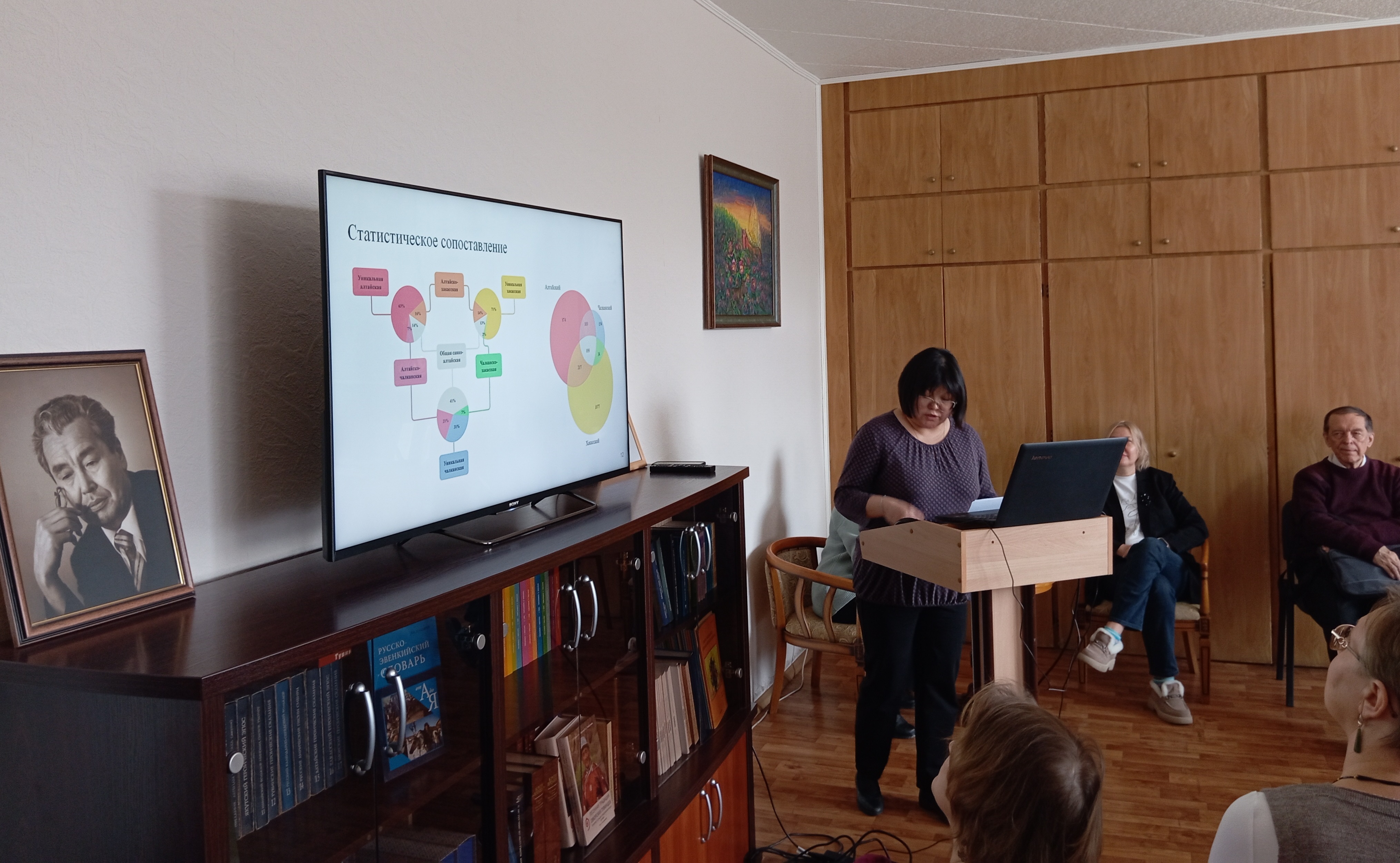 Научный доклад «Промысловая лексика тюркских языков Саяно-Алтая в сравнительном освещении» прочла канд. филол. наук, с.н.с. О.Ю. Шагдурова (Проект 24-28-01738 «Промысловая лексика тюркских языков Саяно-Алтая: документация, опыт сравнительного и лексикографического описания». Конкурс 2023 года (№ 89) «Проведение фундаментальных научных исследований и поисковых научных исследований малыми отдельными научными группами», 2024–2025 гг., руководитель канд. филол. наук О. Ю. Шагдурова).